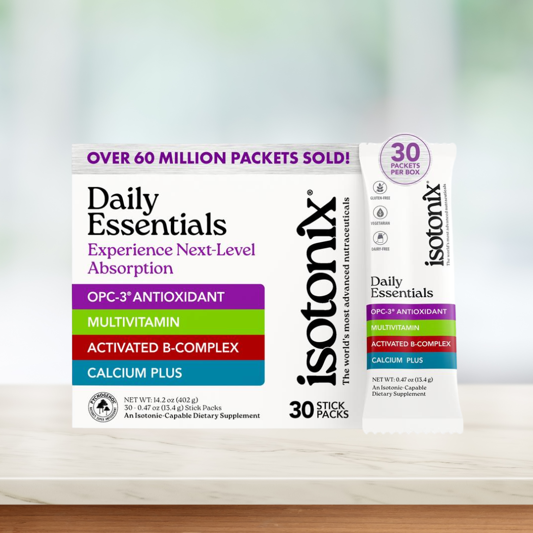 Power your day with 100% of the vital nutrients you need in one serving with Isotonix® Daily Essentials Packets! Packed with four powerhouse bestsellers, get the unmatched delivery and bioavailability of isotonic vitamins and minerals on the go.