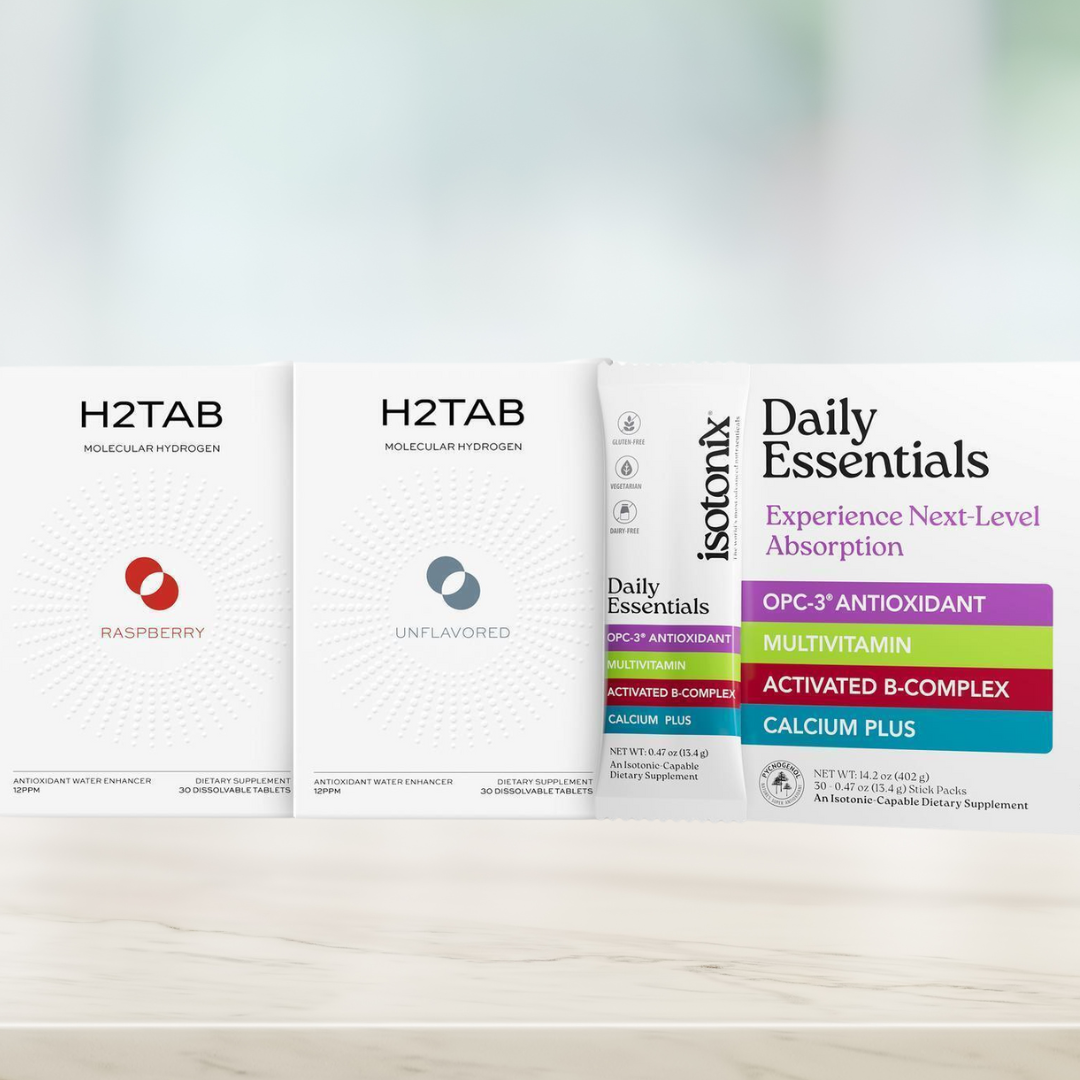 When combined, Isotonix Daily Essentials and H2TAB creates a high-octane release of oxygen in your body. Enhance the effectiveness of your vitamins, amplify energy and recovery at a cellular level, and get whole-body support for metabolism, digestion, and mental clarity with The Ultimate Isotonix Protocol.